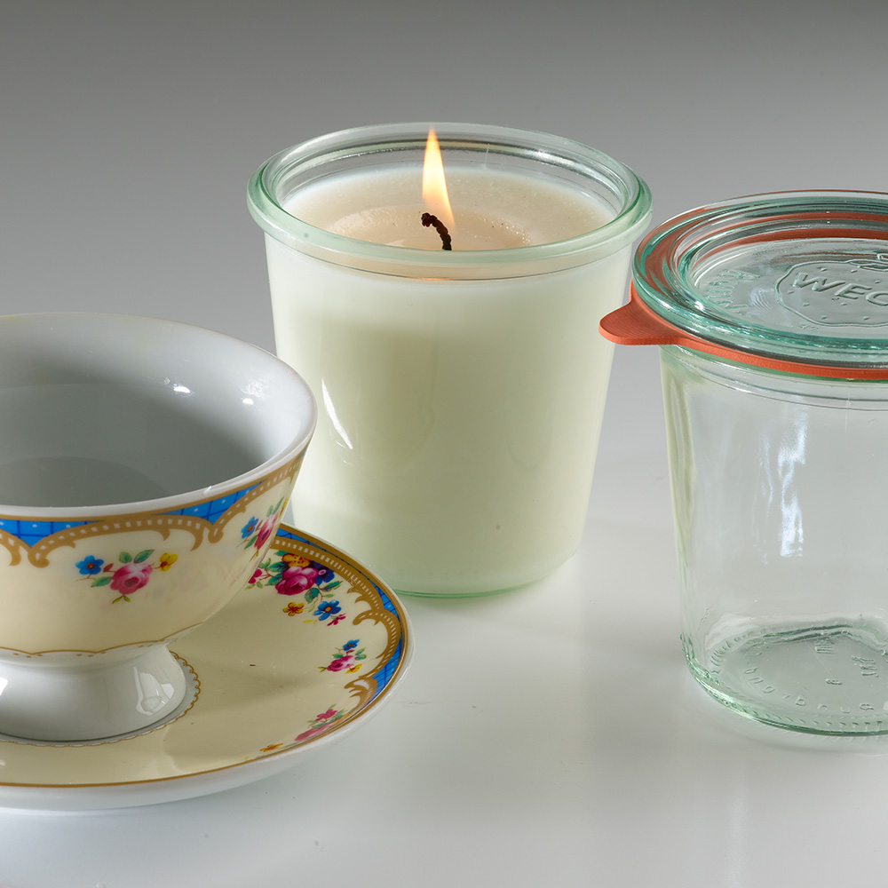 Container candles don’t drip and will be able to use a lower melting point wax than their freestanding candle colleagues, so these are ideal to add fragrance to. Make sure your container is flame proof!