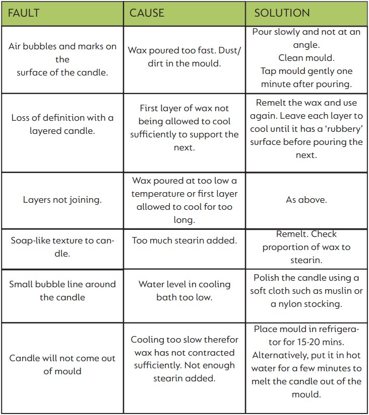 Kits which do not include candle moulds or any of the equipment needed to melt the wax, can be bought separately from any good craft outlet, or from our website: www.dryadeducation.com