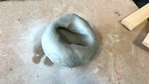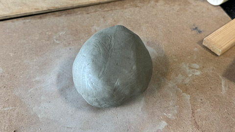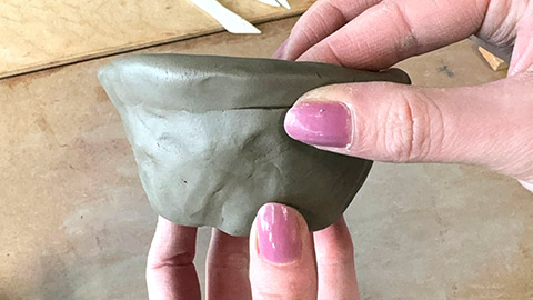 Pinching is a way of shaping clay by pressing and pinching out your ball of clay using your thumb and fingers. First, roll out a clump of clay and wedge it into a ball.