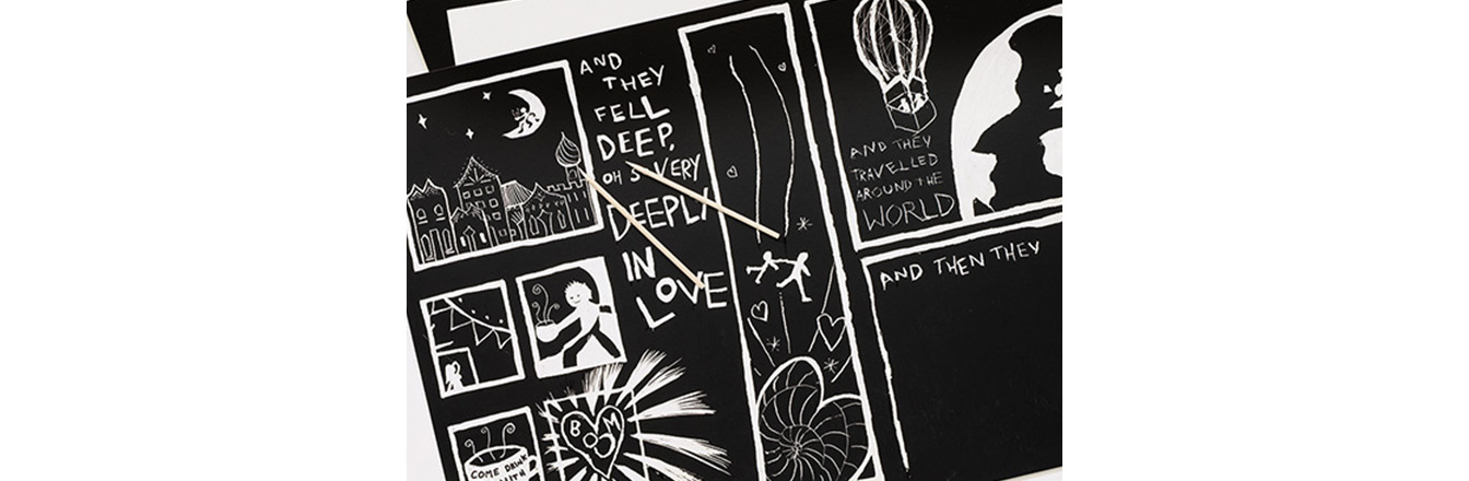 Experiment further with your design by scraping over the lines of your drawing to add your own twist and details!
