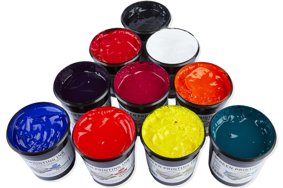 Acrylic paints can be mixed with screen printing medium to produce a good quality screen printing ink.