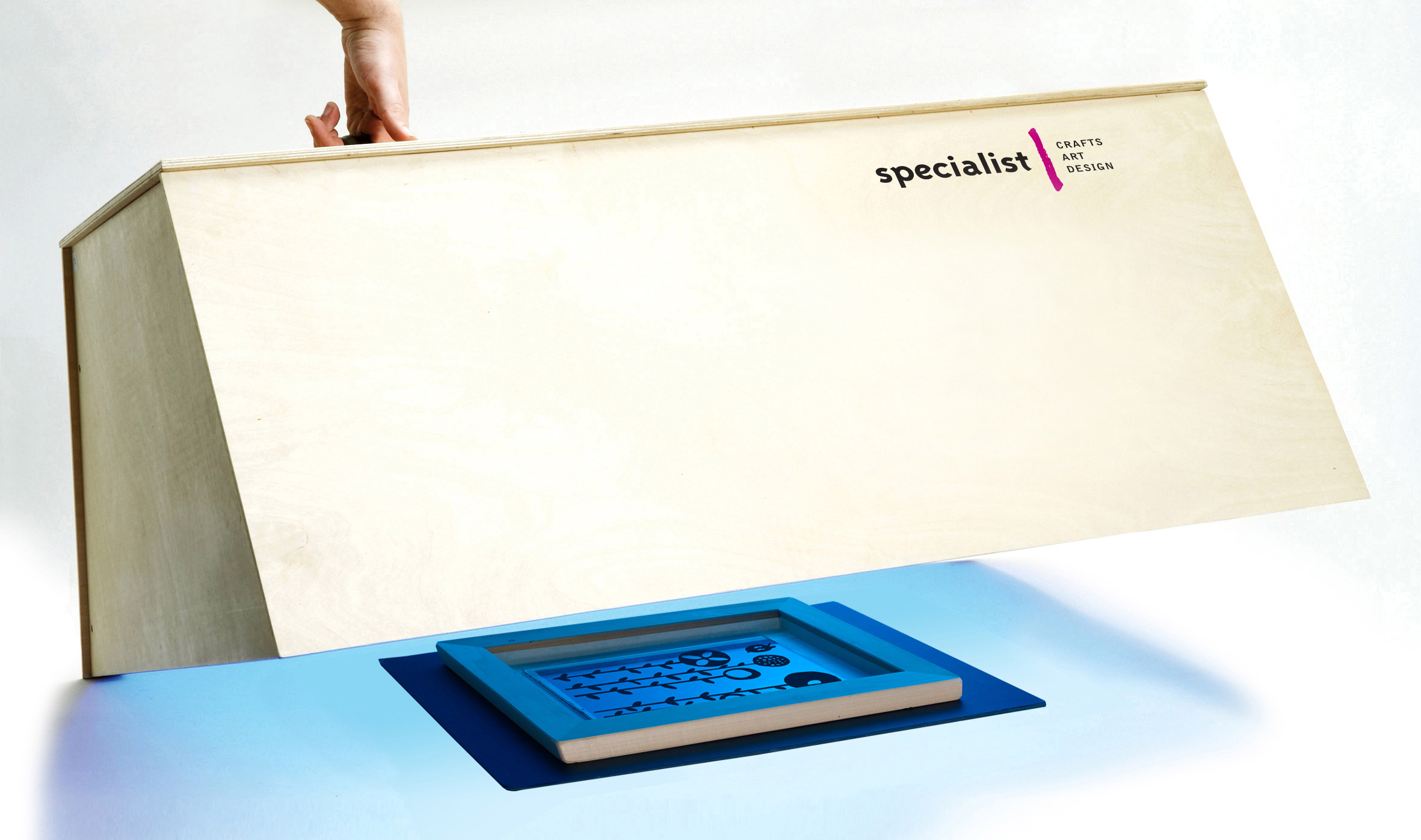 Place your screen mesh side down onto a piece of black, non-reflective card, and position your positive on top of it. Cover the positive with a piece of glass to hold it in place. The first step is to expose your final stencil. This is vital in order to achieve a strong positive and also, so that you do not over-expose, resulting in the emulsion curing to a hard, plastic finish which may be difficult to remove. Exposure times can vary considerably, depending on the type, wattage and age of your light source. With a Portable Photostencil Exposure Unit, begin your test strip at around 15 minutes. For larger units, times start from 10 seconds. The emulsion that has cured to a rubbery finish with clean, crisp lines has received the correct exposure time.