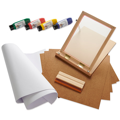 Specialist Crafts water-based inks will work best on paper and board and perform brilliantly when combined with stencils. They are easy to clean up and won’t block your mesh. Unfortunately, these inks will not fix on to fabric.